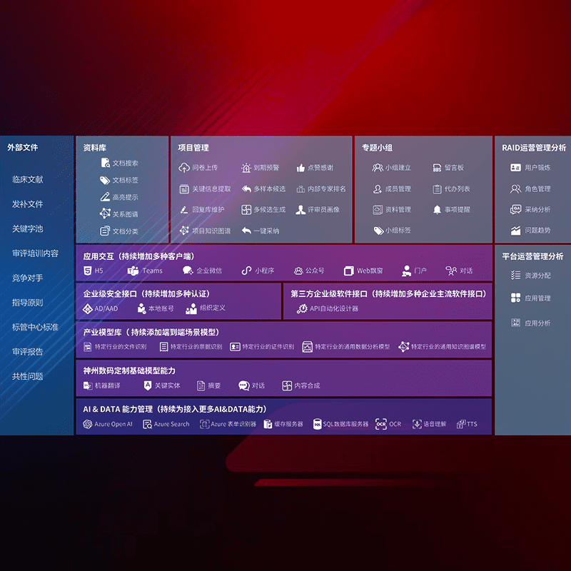 医疗器械产品上市前,,,,要熟悉严格与繁复评审标准,,,,整理分析监管机构指导文件中的海量信息。。。企业急需一个智能化解决方案,,,,提升知识管理效率,,,提高评审通过率,,,以提升其市场竞争力。。